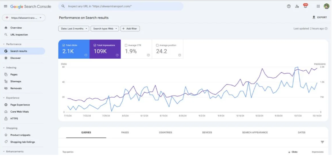 Client A Du bai‑based transportation company offering airport transfers, corporate staff transport, and on‑demand city rides needed to improve its online visibility and capture more high‑intent local leads directly from search and Google Maps. Objectives – Increase organic visibility for Dubai transportation, airport transfers, and staff transport keywords.