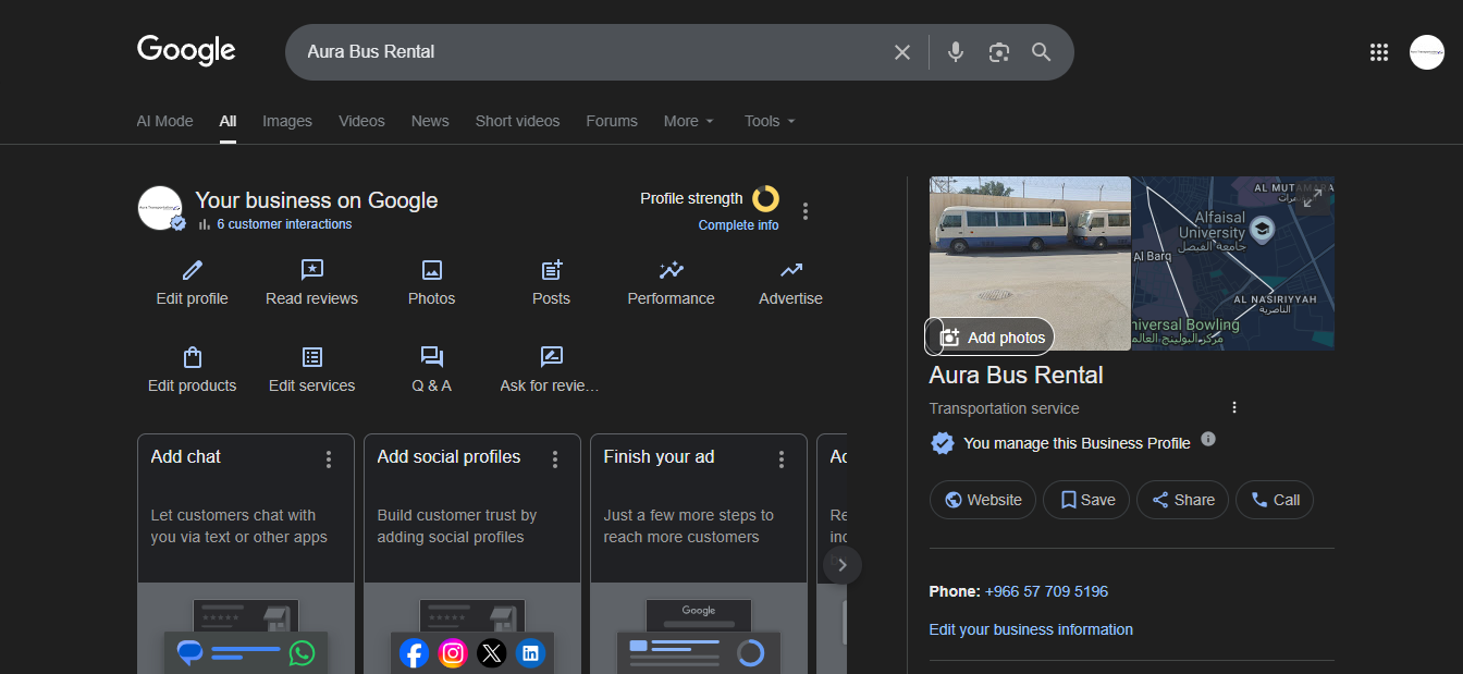 – Turning Google into a Lead Engine (Summary) Client Overview Aura Bus Rental is a Saudi‑based transportation company offering bus rental for corporate clients, events, tours, and group travel. They partnered with DMIndex to make Google a dependable source of new business.
